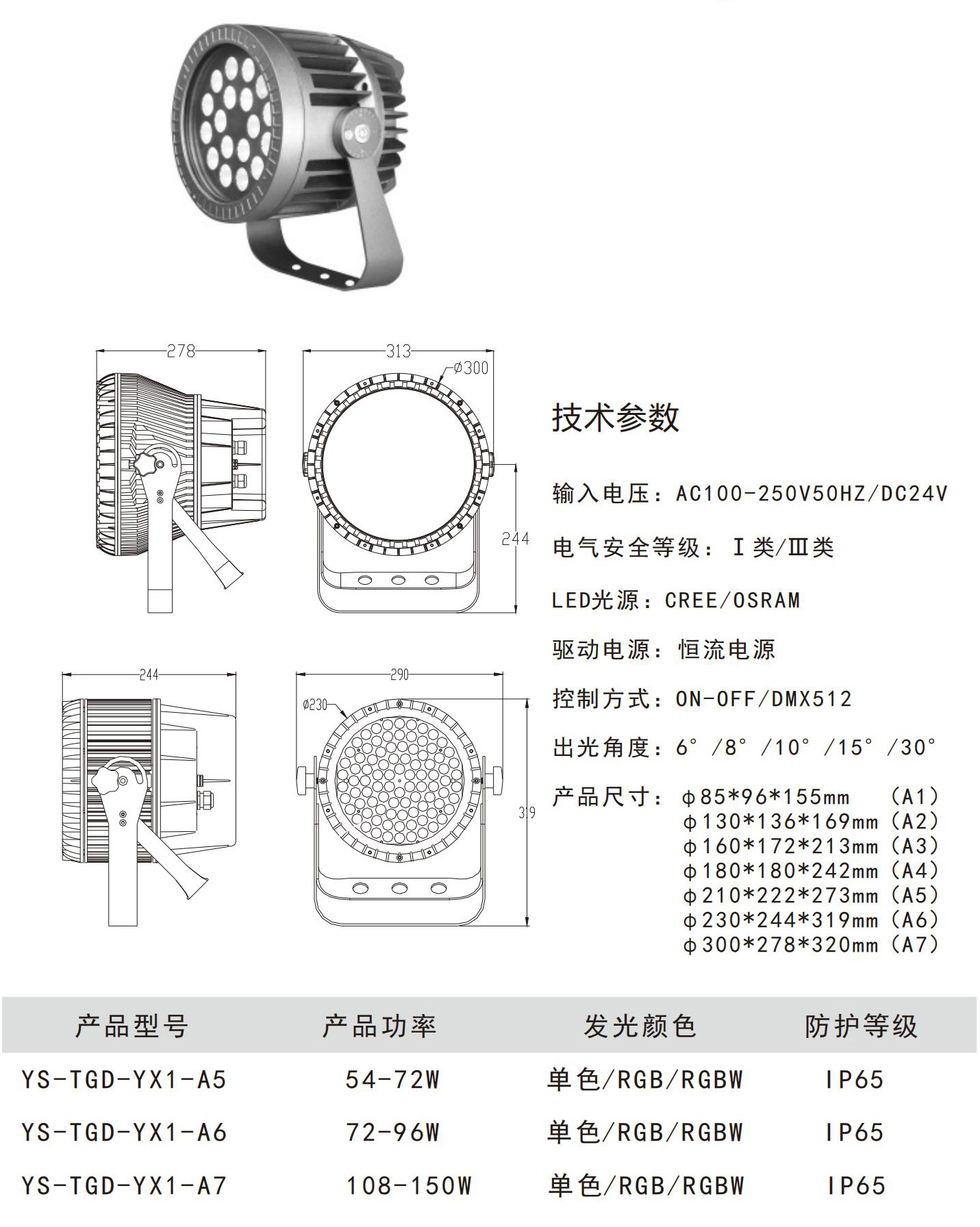 ◆灯具控制方式:单色常亮效果(红、绿、蓝、黄、白、暖白);内控同步RGB七彩变化;外控同步RGB七彩变化:国际标准DMX512协议控制系统;
