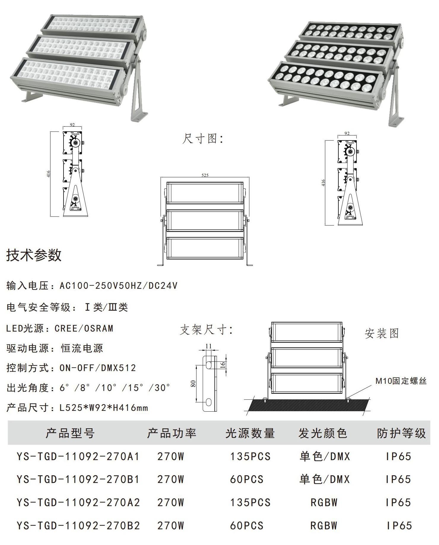 ◆灯具控制方式:单色常亮效果(红、绿、蓝、黄、白、暖白);内控同步RGB七彩变化;外控同步RGB七彩变化:国际标准DMX512协议控制系统;