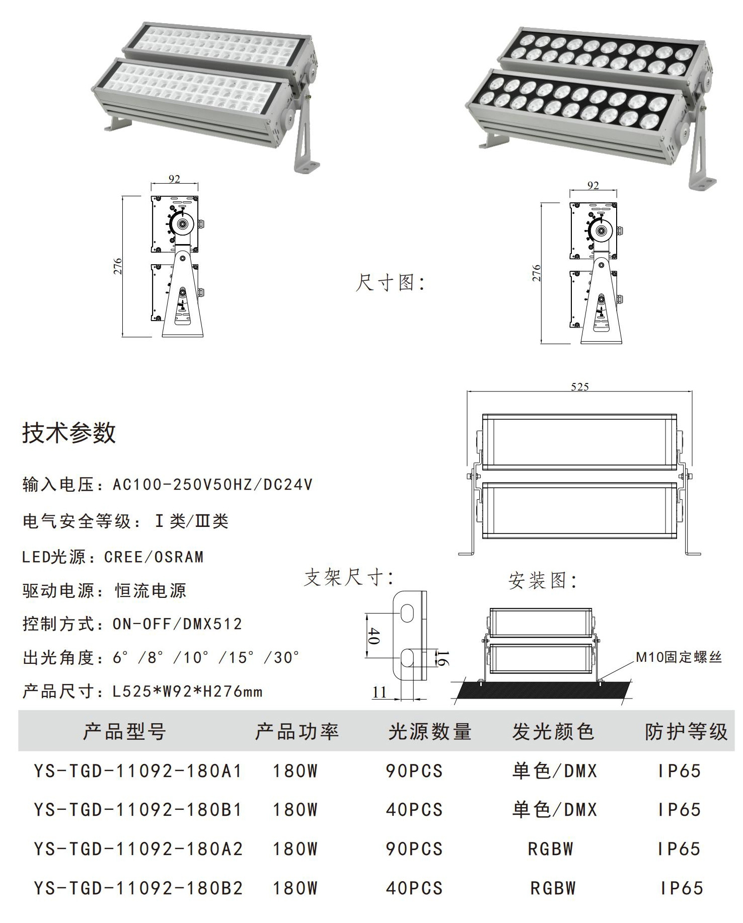 ◆灯具控制方式:单色常亮效果(红、绿、蓝、黄、白、暖白);内控同步RGB七彩变化;外控同步RGB七彩变化:国际标准DMX512协议控制系统;