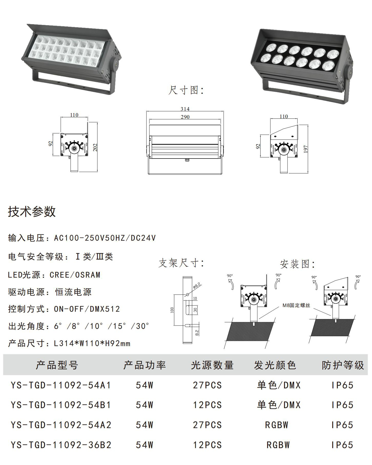 ◆灯具控制方式:单色常亮效果(红、绿、蓝、黄、白、暖白);内控同步RGB七彩变化;外控同步RGB七彩变化:国际标准DMX512协议控制系统;